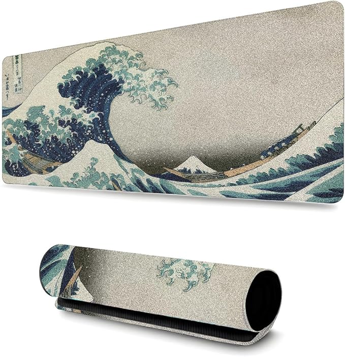 Transforme sua área de trabalho ou setup gamer com este Mouse Pad Profissional tamanho XL, medindo 90x40cm, com a belíssima estampa Onda Oriental, inspirada no estilo japonês clássico.